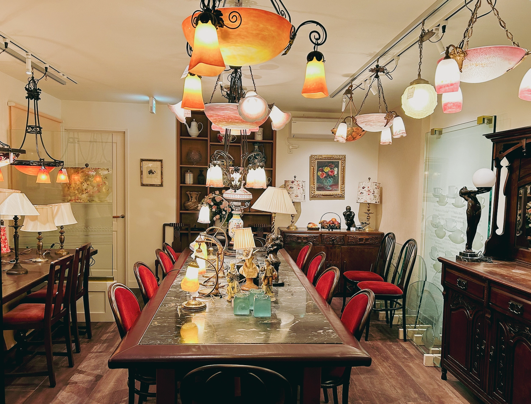 「Antique Antique」は、かつて多くの方に親しまれた喫茶店「亜麻亜亭(アマティ)」の想いを受け継ぎ、新たに生まれたアンティークショップです。店内には、ヨーロッパを中心に集められた家具や雑貨など、時を重ねてなお魅力を放つ一点物の品々が並びます。静かで落ち着いた空間の中で、素材の質感や細部の意匠をじっくりとご覧いただけます。長年のカフェ文化で培われた美意識と温もりをそのままに、時を超えて受け継がれる品々との出会いをお楽しみください。
