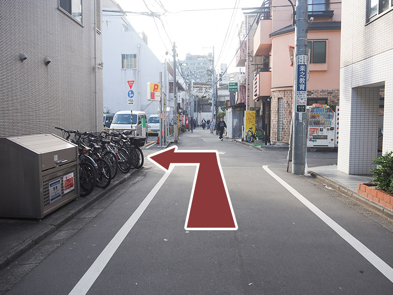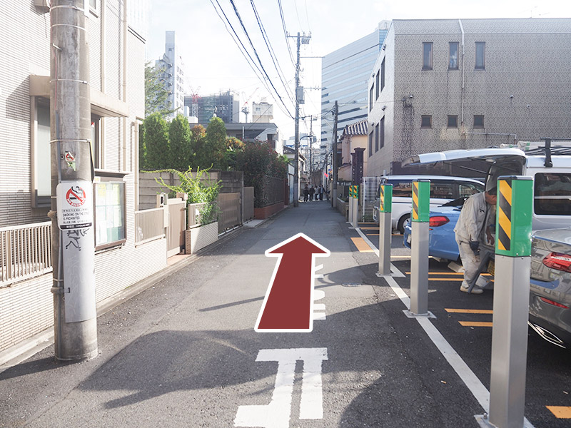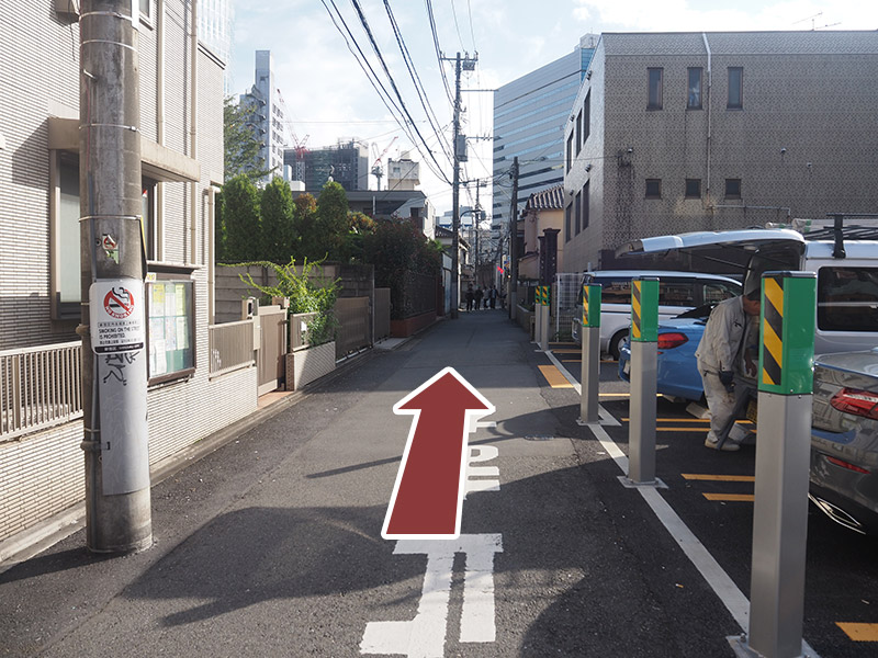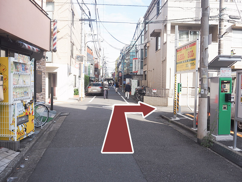 直進していると右手側にコインパーキングが見えてきますので、その先の角を右折してください。