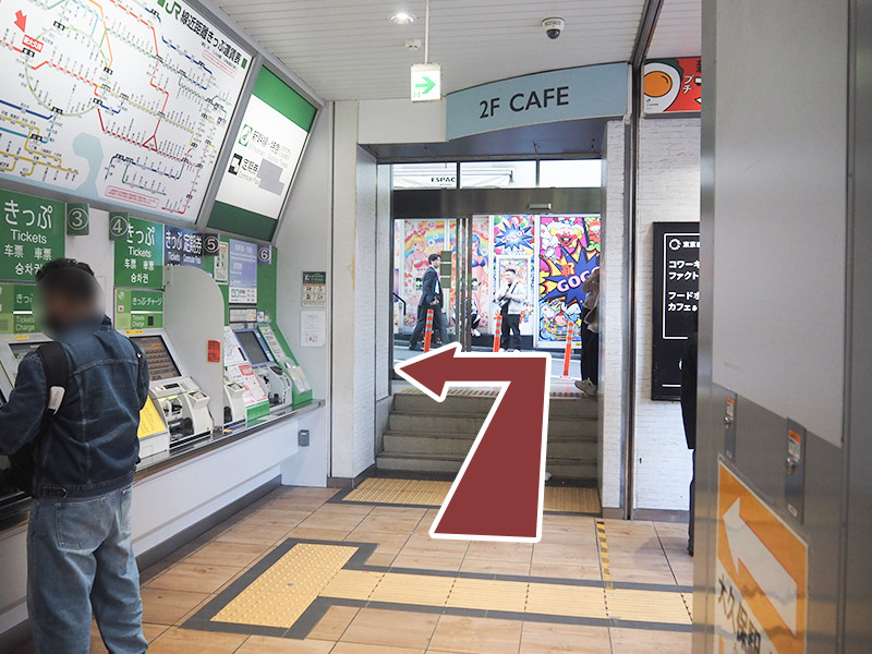 改札を出ましたら左側にありますきっぷ売り場前を通り、出口から出て左折してください。