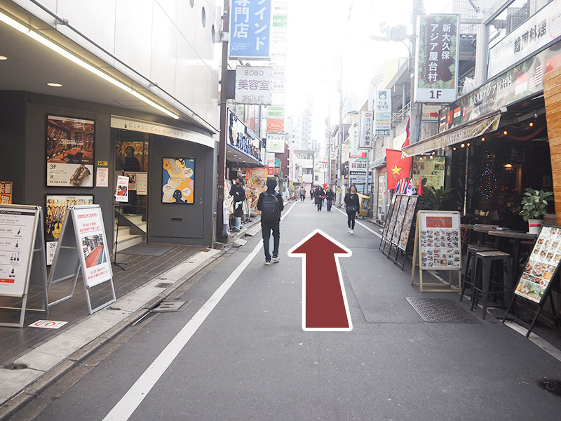 「大久保駅」南口改札をでましたら左折してください。
